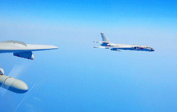 ??? 4月19日,中國空軍轟-6K等多型戰機執行“繞島巡航”任務。中國空軍4月21日向海內外發布多語種宣傳片《戰神繞島新航跡》。空軍戰神轟-6K等戰機近日連續3天“繞島巡航”的震撼畫面,在宣傳片中集中展現,彰顯了空軍飛行員維護國家主權和領土完整的意志能力。新華社發(秦軍 攝)