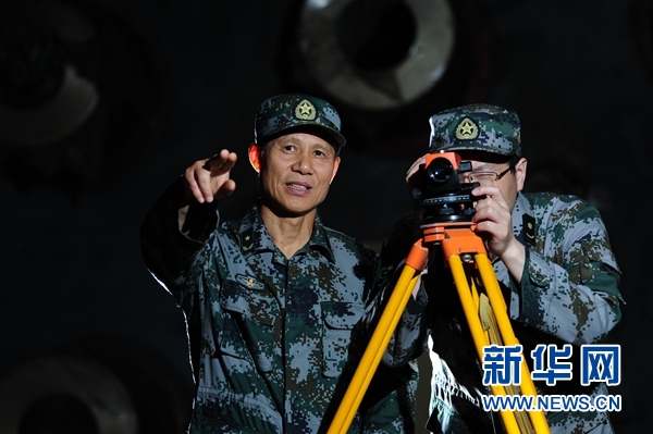 中國工程院院士、軍事科學院國防工程研究院研究員任輝啟(左)開展量測工作(資料照片)。新華社發(侯藝兵 攝)