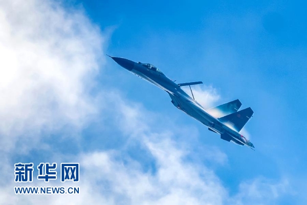 訓練中,空軍“先鋒飛行大隊”飛行員駕駛戰機在空中展開減速板,進行實戰背景下的戰術機動(9月4日攝)。 新華社發(楊盼 攝)