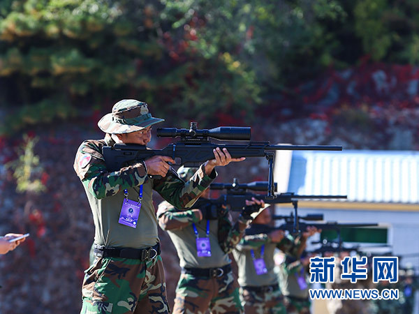 10月18日,參賽隊員在多種姿勢狙擊課目中采用立姿進行狙擊。新華社發(安曉惠 攝)