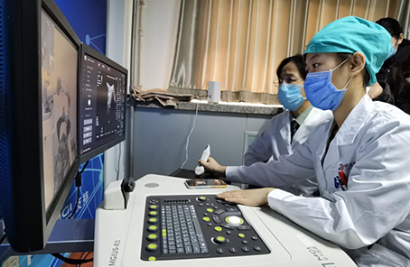 ????解放軍總醫院第三醫學中心多位專家19日運用5G超聲門診系統,為身處海拔4600米的武警西藏總隊那曲支隊衛生所的官兵進行診療。