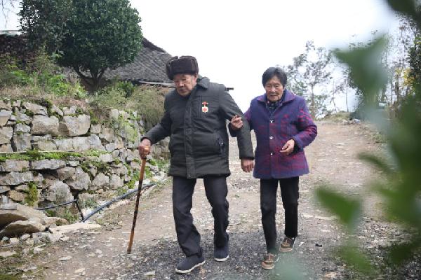 ????從湖北省巴東縣城坐車繞著山路行駛一個半小時后,記者來到官渡口鎮觀音巖村村民黃厚勇家中。黃厚勇是抗美援朝老兵黃忠茂的三兒子,老人跟他生活在一起。