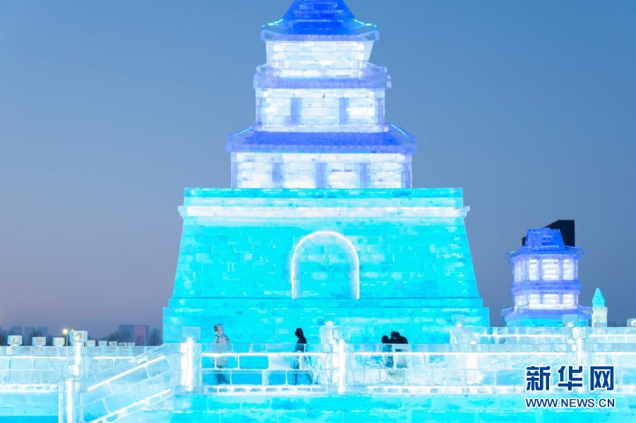 2021年1月1日,游客在哈爾濱冰雪大世界園區游玩。