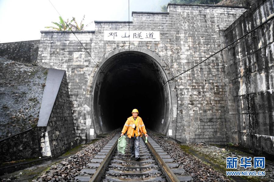 在廣西河池境內黔桂鐵路線上的鄧山隧道,中國鐵路南寧局集團有限公司柳州工務段的4名看守工輪換值班,依靠手電筒在黑暗中穿行,及時巡查隧道中可能出現的各種隱患,確保每天經隧道運行的59趟客貨列車春運安全。鄧山隧道全長773米,是一個需要人員全天候看守的鐵路隧道。