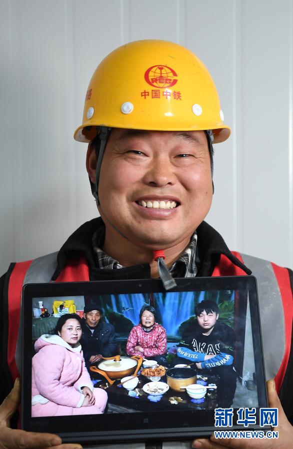 陳歡樂,40歲,安徽省濉溪縣人。“帶著大伙出來打工快一年了,就地過年,說不想家,那是假的,響應國家政策嘛。過年工地上發肉發菜,還有節日補貼,你們在家放心吧,等忙完這段就回家。”這是陳歡樂與家人照片的合影(2月4日攝)。