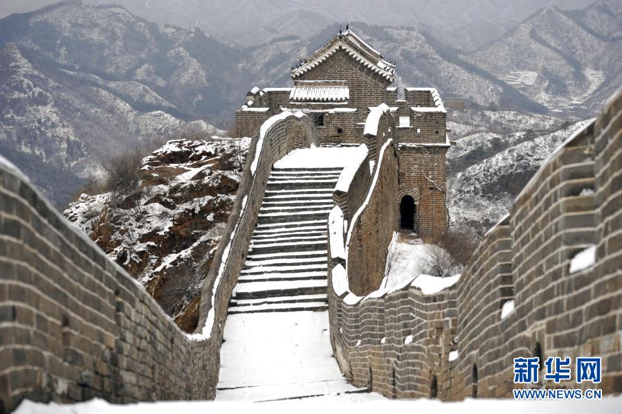 這是2月23日拍攝的金山嶺長城雪景。受冷空氣影響,河北省承德市灤平縣當日出現降雪天氣。雪后的金山嶺長城銀裝素裹,美如畫卷。新華社發(王立群 攝)