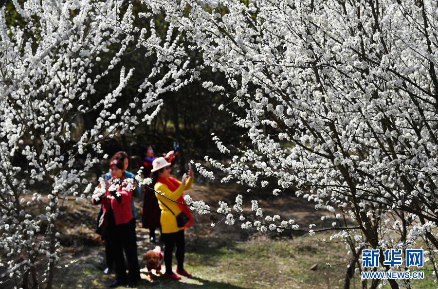 3月3日,市民在漢江之畔的安康市城東新區賞花。新華社記者 陶明 攝