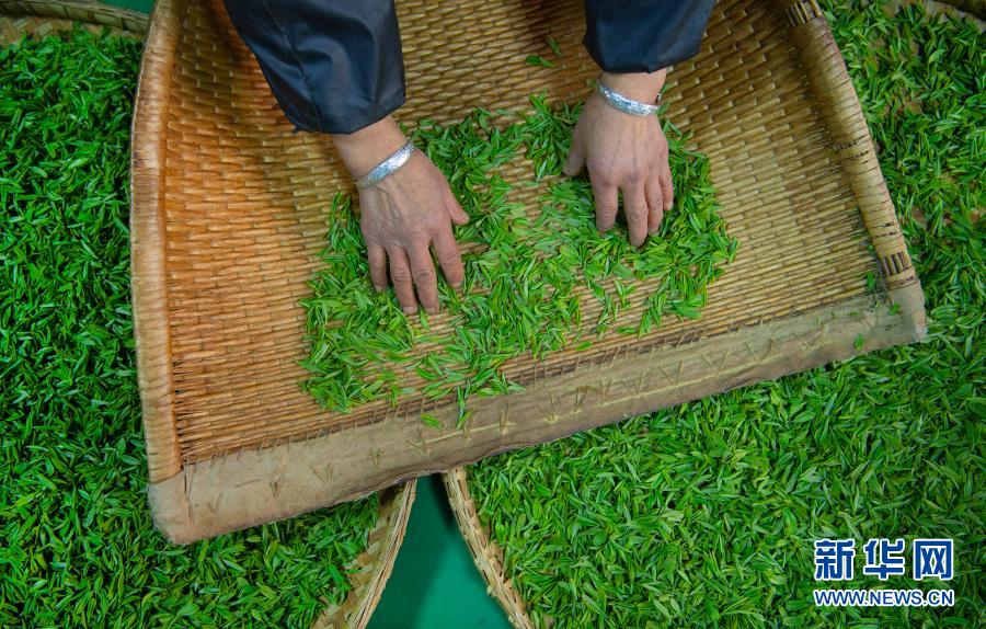 3月4日,安康市漢濱區(qū)流水鎮(zhèn)剛子茶葉專業(yè)合作社的社員在篩選采摘的新茶。新華社記者 陶明 攝