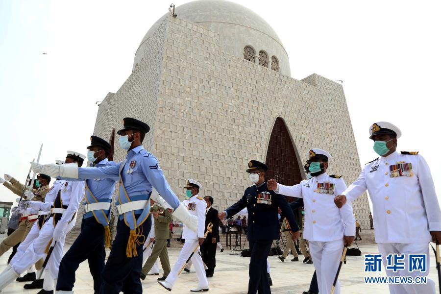 3月23日,巴基斯坦軍人在位于卡拉奇的國父真納墓參加“巴基斯坦日”紀念活動。