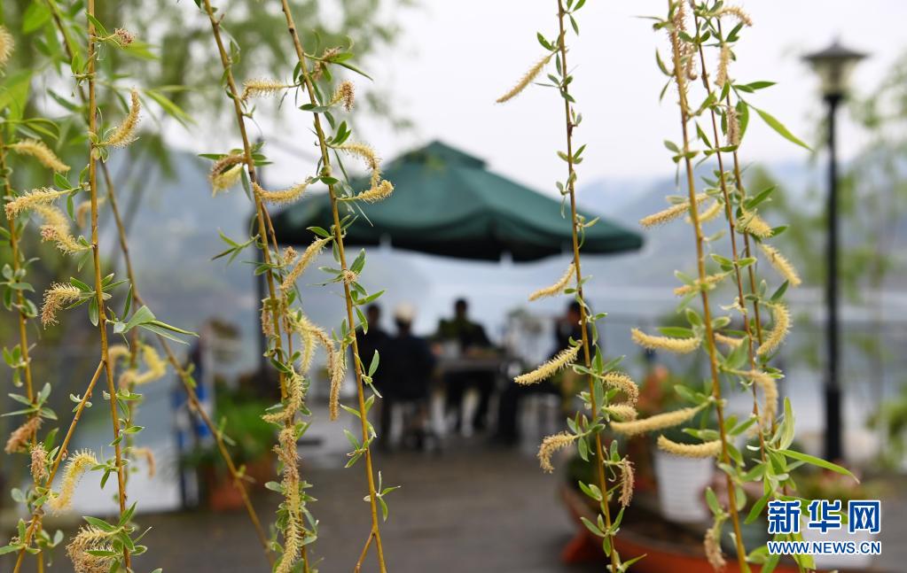 游人在流水鎮民宿休閑(3月26日攝)。