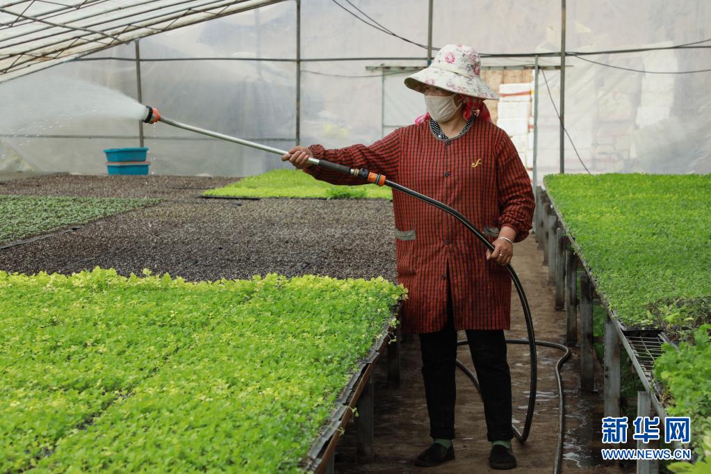 3月25日,位于青海省海西蒙古族藏族自治州都蘭縣香日德鎮下柴源村的都蘭柴源蔬菜種植專業合作社工作人員在澆灌蔬菜。新華社記者 王艷 攝
