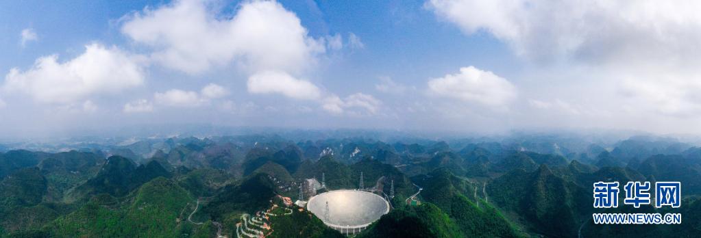 在貴州省平塘縣,被譽為“中國天眼”的500米口徑球面射電望遠鏡(FAST)在群山中仰望星空,探求著宇宙奧秘。