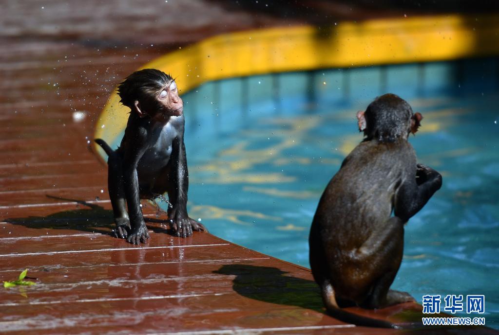 獼猴戲水
