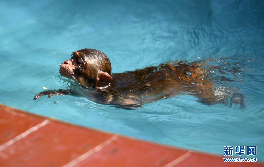 獼猴戲水