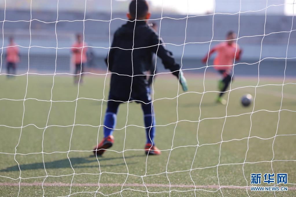 4月5日,在河北省唐山市海港經濟開發區體育中心,孩子們在進行足球比賽。