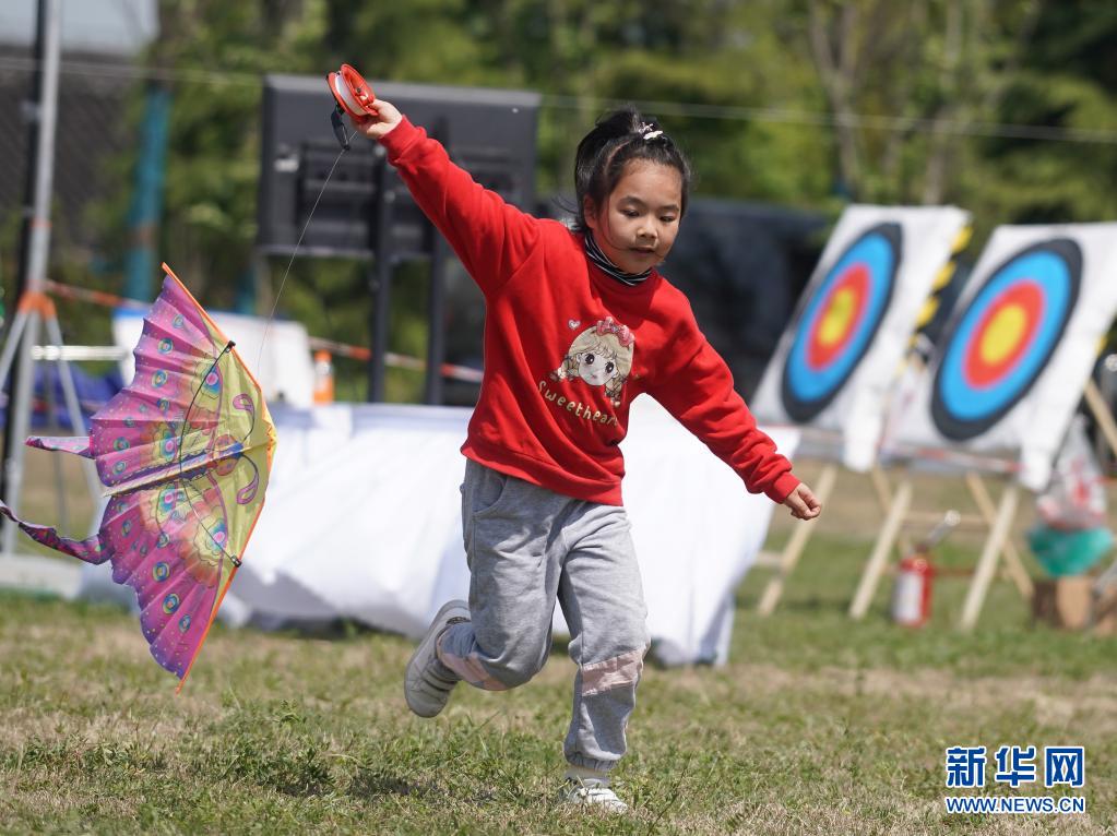 4月10日,小朋友在第二屆金陵風箏會上放風箏。當日,第二屆金陵風箏會在江蘇省南京市浦口區永寧街道舉行。人們放飛風箏,歡度快樂時光。新華社記者 季春鵬 攝