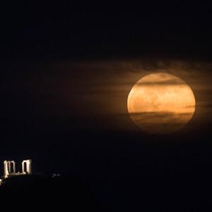 希臘海神廟:“超級月亮”現身夜空