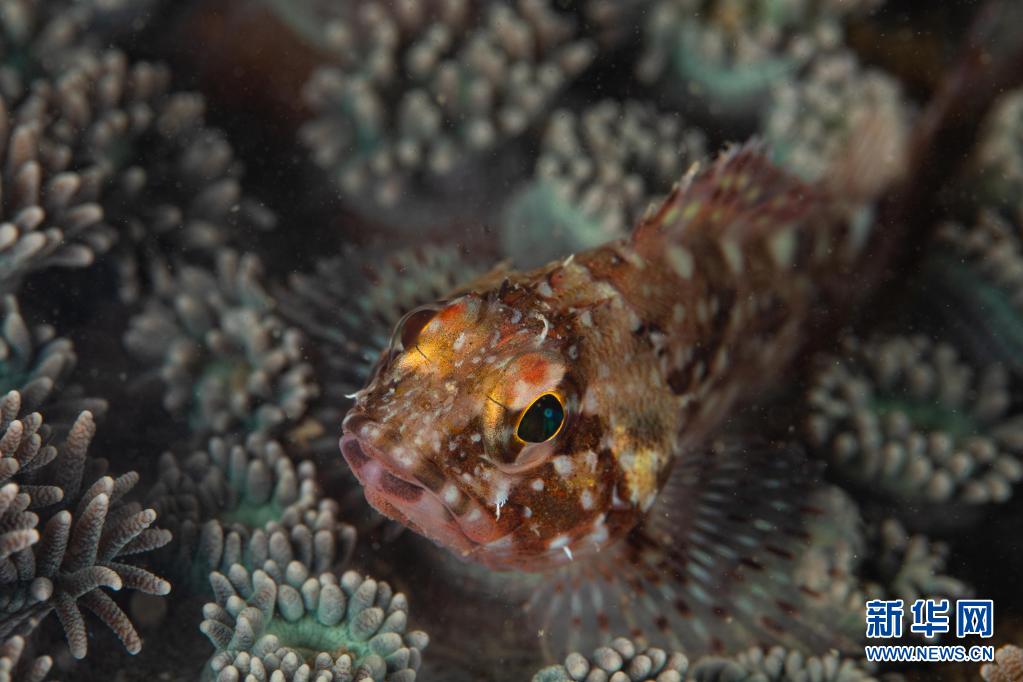 珊瑚群落是魚類幼體的庇護所,這條幼魚利用珊瑚躲避天敵(4月27日攝)。 新華社發(羅喬喬 攝)