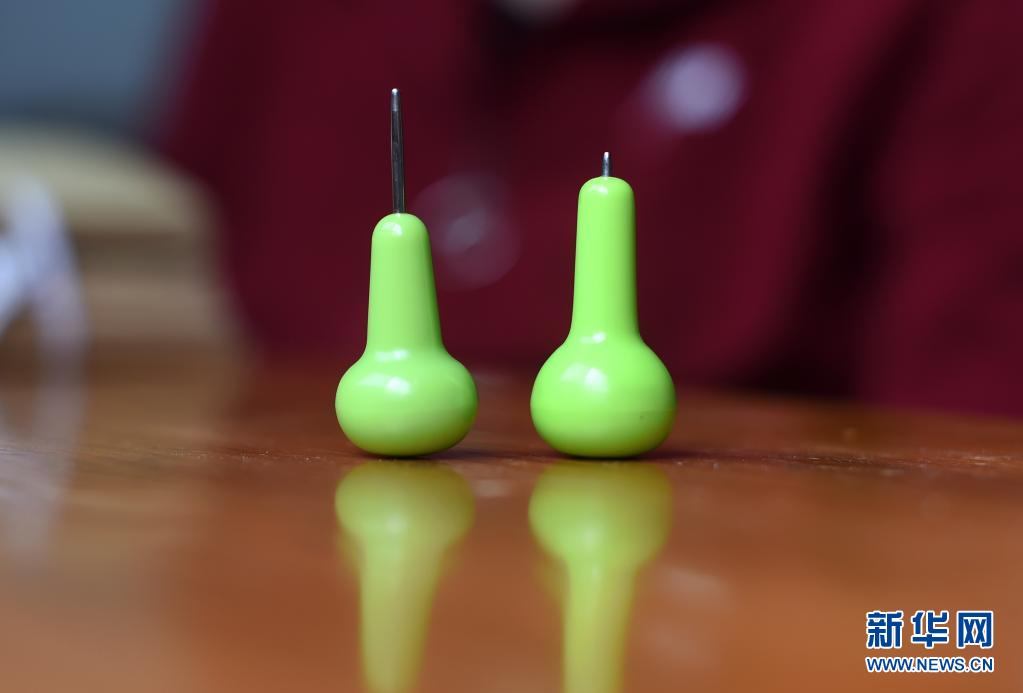 盲文筆筆頭是合金材質、不易磨損,而葉景芬的一支盲文筆(右)因長期使用筆頭已磨損殆盡(攝于4月28日)。新華社記者 韓傳號 攝