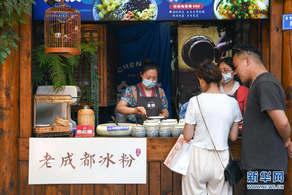 5月1日,游客在四川省成都市寬窄巷子景區購買飲品。