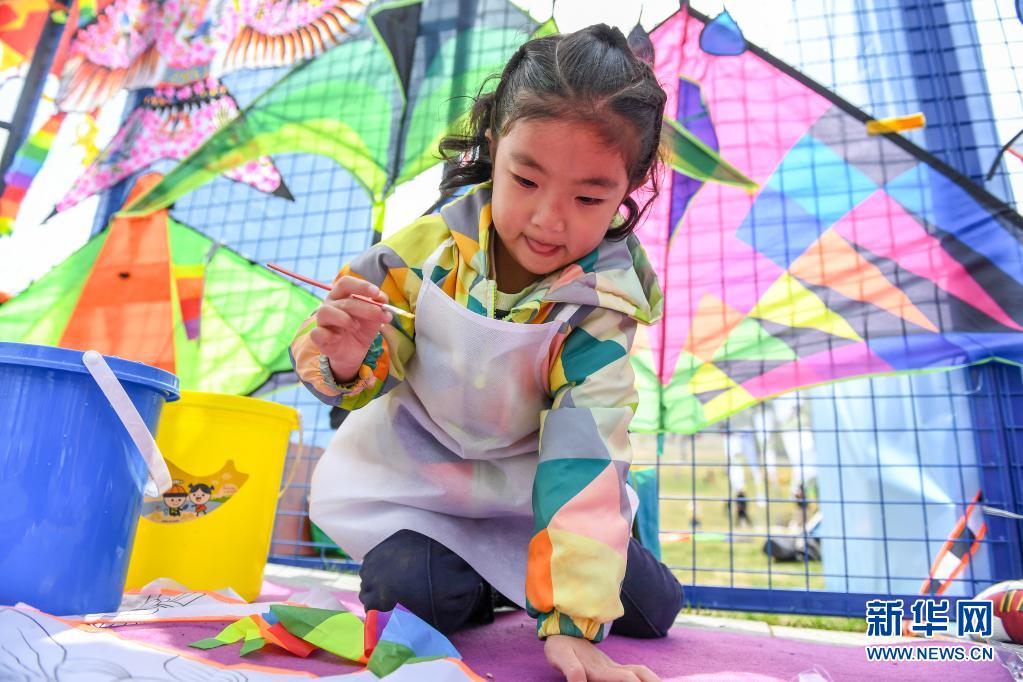 5月1日,在吉林市萬科松花湖度假區,小朋友創作手繪風箏。