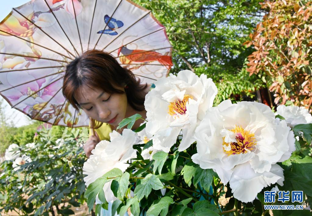 “五一”假期,位于山東青島西海岸新區的國際牡丹產業園舉行賞花會,競相綻放的各色牡丹花吸引眾多游客前來踏青賞花,享受假日春光。