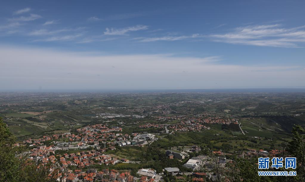 這是5月6日在圣馬力諾城中拍攝的遠處的亞得里亞海。