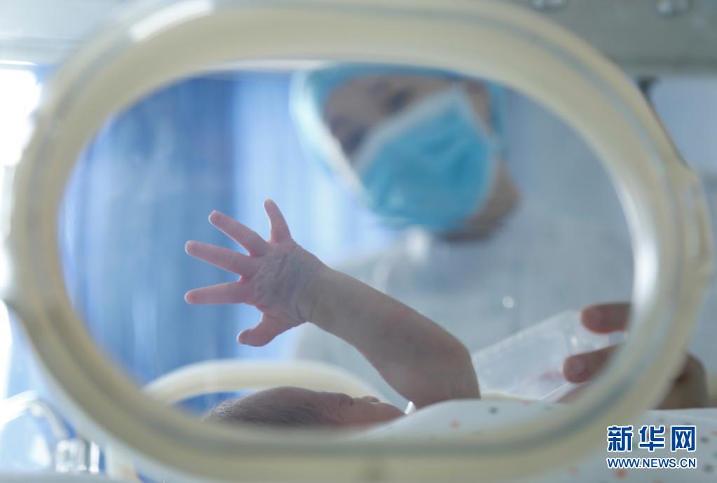 5月11日,在河北省邢臺(tái)市南和區(qū)人民醫(yī)院新生兒科,一名護(hù)士在護(hù)理新生兒。