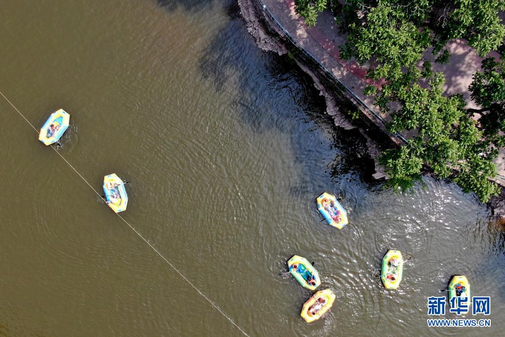 5月12日,游客在河北省邢臺(tái)市天河山景區(qū)漂流(無(wú)人機(jī)照片)。