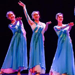當舞臺被燈光照亮,伴隨著臺下老師隨音樂律動的手語指揮,一隊舞者在臺中央翩翩起舞。