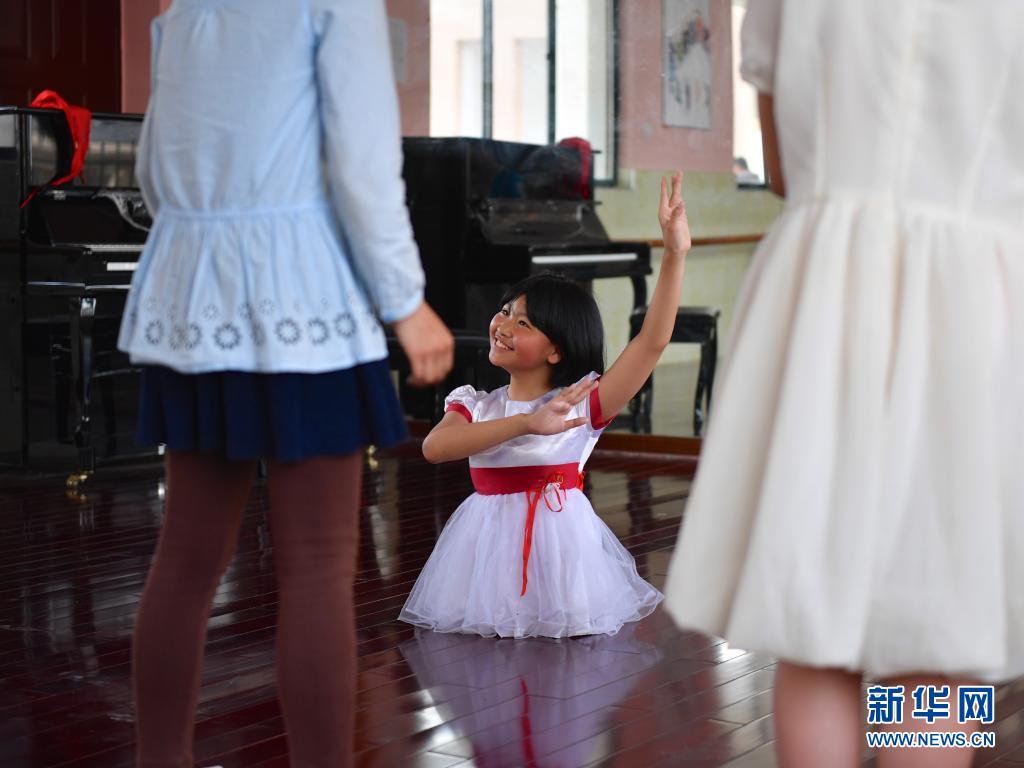 2017年5月17日,蔣張子怡在學校的舞蹈房內給舞伴們講解舞蹈的分解動作。