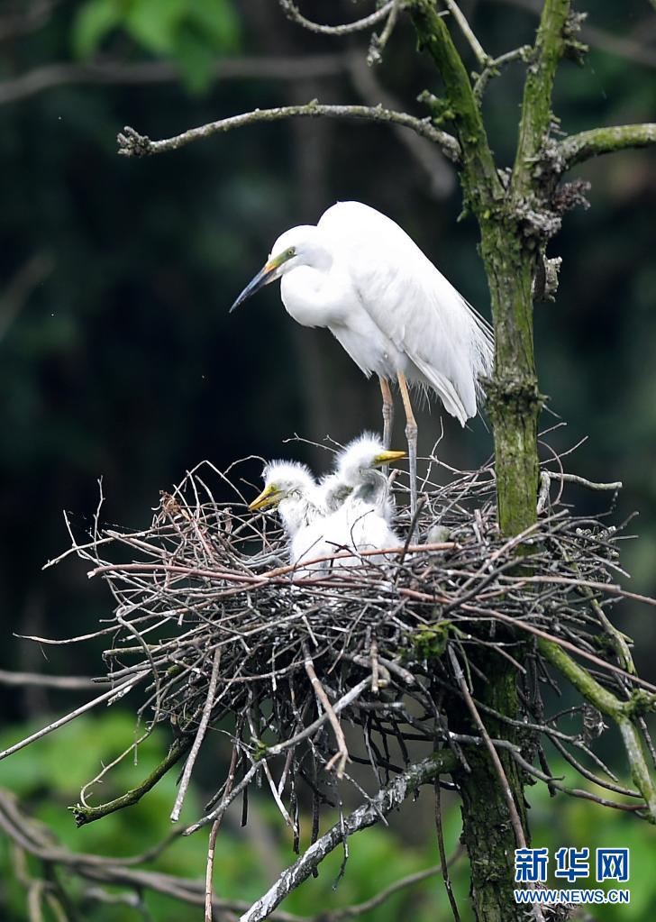 在南昌市新建區(qū)象山森林公園內(nèi),白鷺和雛鳥們?cè)谝黄穑?月18日攝)。