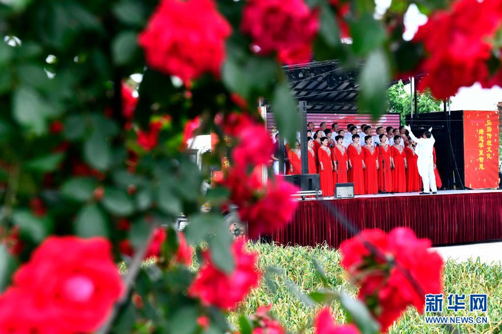 5月21日,在棗莊市臺兒莊區馬蘭屯鎮西張莊村,“學黨史惠民”文藝小分隊為群眾表演節目。