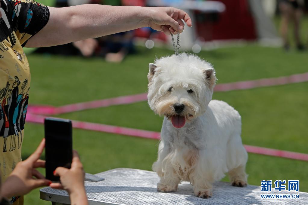 5月23日,一只寵物犬在羅馬尼亞首都布加勒斯特參加選美比賽。新華社發(克里斯泰爾攝)
