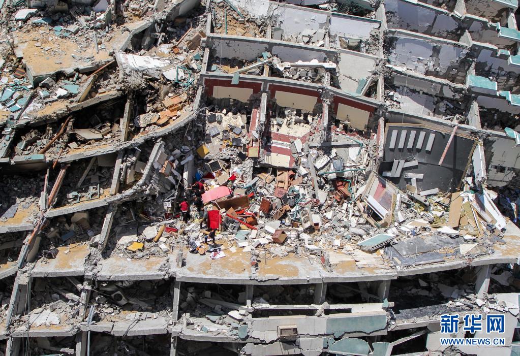 這是5月23日在加沙城拍攝的遭以軍空襲損毀的賈拉塔。5月10日以來,以色列與加沙地帶武裝組織之間爆發嚴重沖突。20日晚,哈馬斯與以色列方面各自宣布,雙方已達成停火協議,停火從21日凌晨開始。新華社發(里澤克·阿卜杜勒·賈瓦德攝)