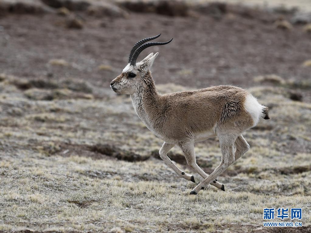 5月25日,一只藏原羚在三江源國家公園黃河源園區內奔跑。