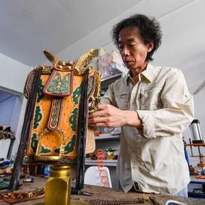 騎馬、射箭、摔跤并稱為蒙古族的“男兒三藝”。在內蒙古錫林郭勒盟錫林浩特市,蒙古族手工藝人錫林虎,從2005年起致力于傳承民族特色文化,將“男兒三藝”中的傳統元素——馬鞍、弓箭、摔跤服融入工藝品制作中,打造出一件件獨具匠心的民族特色藝術品,受到牧民和游客的喜愛。