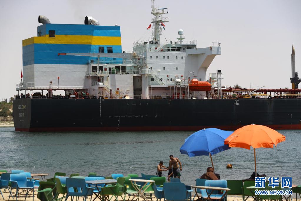 這是5月30日在埃及伊斯梅利亞省拍攝的航行在蘇伊士運河上的貨船。