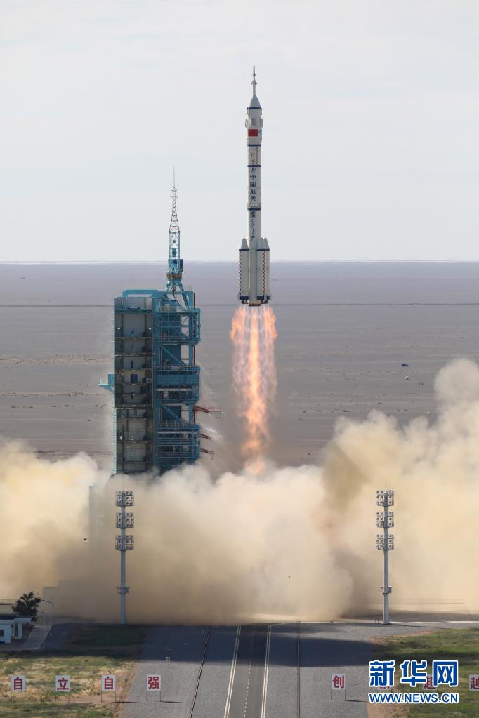 6月17日,搭載著神舟十二號(hào)載人飛船的長征二號(hào)F遙十二運(yùn)載火箭在酒泉衛(wèi)星發(fā)射中心點(diǎn)火升空。新華社記者 李剛 攝