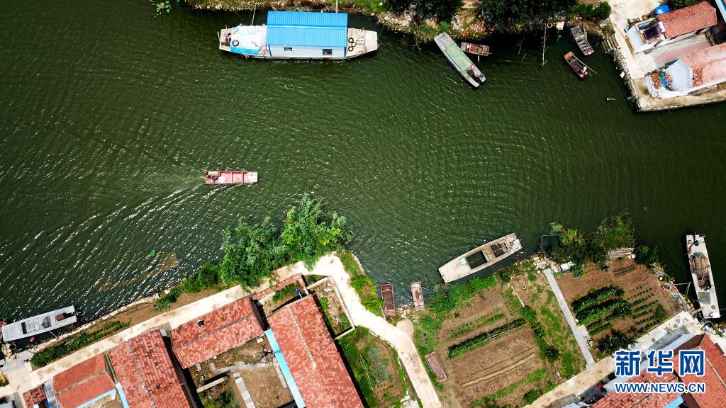 6月20日,在微山縣南陽(yáng)鎮(zhèn),郵遞員王少朋駕駛郵船為龔莊村村民投遞郵件。