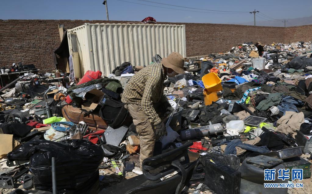 7月3日,在阿富汗帕爾萬省的巴格拉姆空軍基地附近,當地居民在美軍遺留下的物品中回收廢舊物。