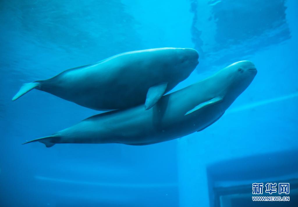7月5日,江豚媽媽洋洋和小江豚YYC在水中游動。新華社記者肖藝九攝