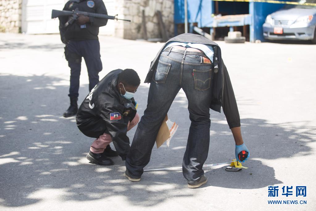 7月7日,在海地太子港,工作人員在海地總統莫伊茲的住所旁開展調查。
