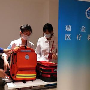 上海交通大學醫學院附屬瑞金醫院的醫護人員擔當志愿者,在中共一大紀念館設立醫療救治點,提供醫療保障任務(7月11日攝)。