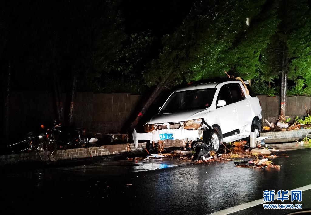 7月21日在310國道米河鎮段拍攝的一輛因洪水損壞的汽車。