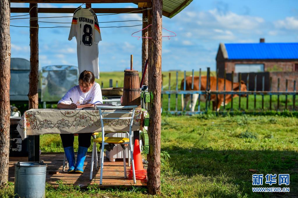 盛夏時(shí)節(jié)的呼倫貝爾草原美不勝收,吉布斯樂瑪一邊幫助父母放牛,一邊學(xué)習(xí),空閑時(shí)間與足球?yàn)榘椋倨谏罘滞獬鋵?shí)。