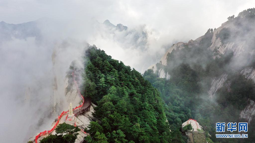 初秋時(shí)節(jié),陜西省渭南市華山景區(qū)云霧飄蕩,如夢(mèng)似幻宛如仙境。
