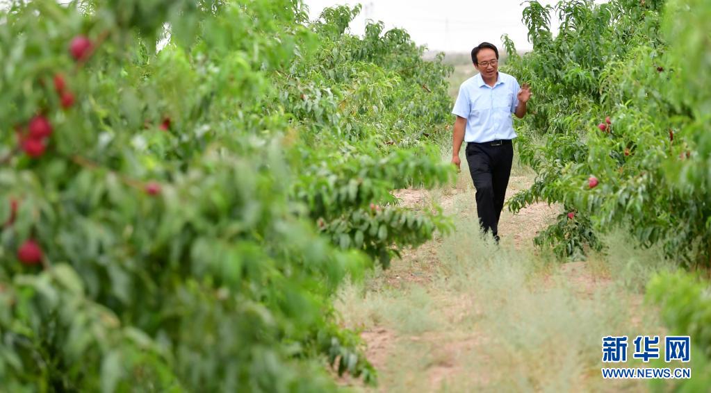 8月18日,方志利在查看桃子生長(zhǎng)情況。新華社記者 陳斌 攝