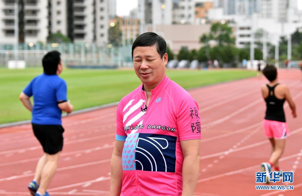 猛龍長跑隊創辦人莫儉榮接受記者采訪(7月29日攝)。新華社記者 盧炳輝 攝