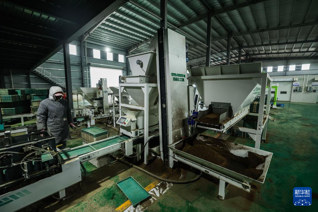在位于慈溪现代农业开发区内的慈溪市腾丰省级现代化农事服务中心育秧中心,早稻种子在育秧流水线上被均匀放入育秧盘(3月17日摄)。